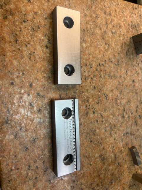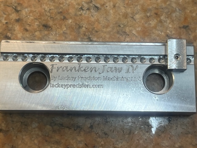 Franken Jaw IV are soft steel (1018) jaws for 4 inch Kurt Vises. They have a .10″ deep by .15″ wide step and a built in adjustable stop that will always be below the top of the vise jaw. The stop uses a dovetail and an M3 set screw to create a quick adjustment and a positive stop for your work piece. $65 per set, free shipping to continental United States